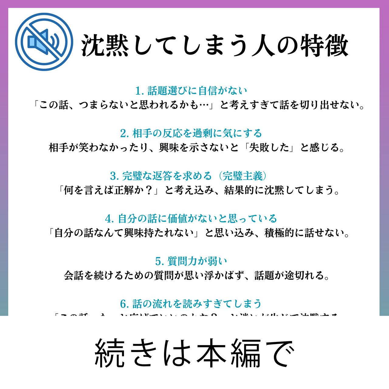 ✔️ 沈黙が怖い理由とその克服法